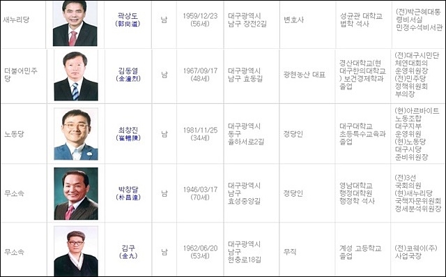 한편 후보등록 마감(24~25일)을 앞둔 22일 현재 중앙선거관리위에 등록된 중남구 후보는 12명이다. 새누리당이 8명으로 가장 많았지만 곽 후보 공천으로 나머지 7명이 탈락하면서 모두 5명이 경쟁하게 됐다. 야당은 김동열(더민주당)·최창진(34.노동당), 무소속은 박창달(70), 김구(53) 후보가 뛰고 있다.