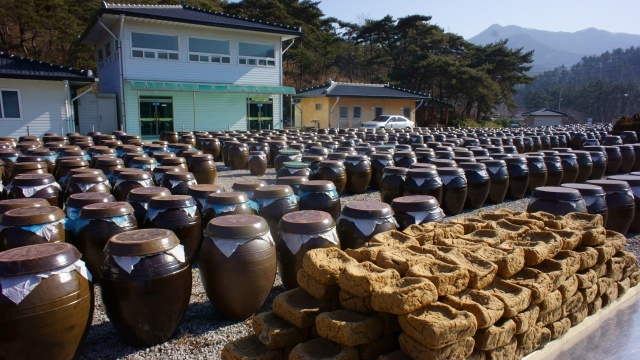 서해안 고속도로를 달리다가 넓게 펼쳐져 있는 곰소만을 거쳐 국립공원내변산에 숨어있는 삼보식품 된장농원에 도착합니다. 삼보식품은 변산반도의 풍부한 일조량과 지하암반대수층의 맑은 물, 소나무숲 등이 어우러져 음이온이 풍부하게 발산된다는 천혜의 자연환경에 자리하고 있습니다. 삼보식품의 죽염장류는 100% 국산콩만을 계약 재배해 그해 생산되는 햇콩만을 사용한다고 합니다. 가마솥에 삶아진 콩은 유기농 볏짚을 이용해 메주를 만들고, 전통옹기에서 최소 2년 이상 숙성기간을 거쳐 만들고 있습니다. 삼보식품은 2007년부터 3회, 9회 구운 죽염을 이용한 프리미엄장을 담아왔고, 현재 800개(10말)의 항아리들이 된장농원의 장관을 이루고 있습니다.