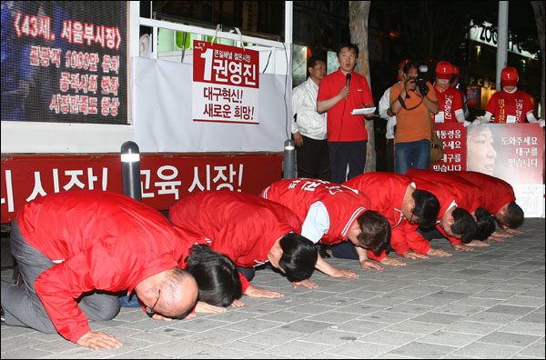 앞서, 새누리당은 지난 2014년 6.4지방선거 때도 시민들에게 '엎드려 사죄'했다.