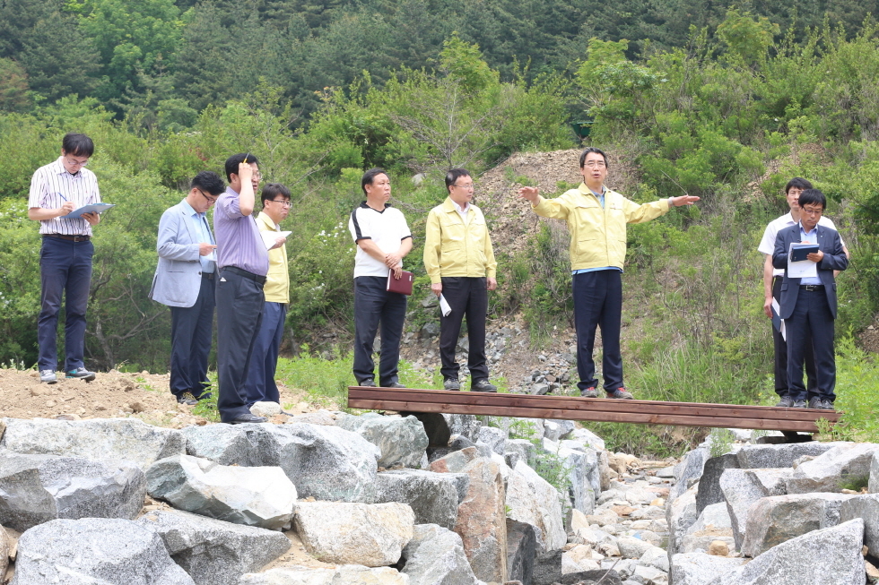 ▲이순선 인제군수는 8일 내린천 수변공원 조성사업 등 13개 사업장을 방문해 현장점검을 실시했다. ⓒ인제군