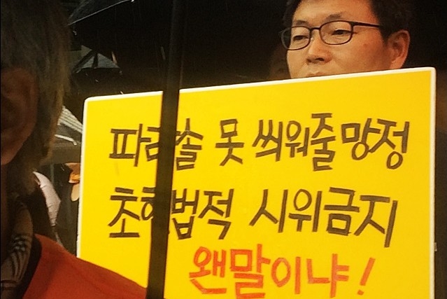 폭우가 쏟아지는 와중에도 이날 기자회견장에는 시민단체 관계자와 취재진 등 70여명이 참여했다. 대구시의 청정구역 발표에 분노한 시민단체 관계자들은 한 목소리로 대구시를 규탄하며 해명을 촉구했다. 권택흥 민주노총대구지역본부장은 "어느 지자체도 청사 앞 집회, 시위를 막는 곳은 없다"며 "집회·시위는 이미 청사 도로 건너 편에서 하고 이를 어기면 집시법 위반으로 법적 책임을 진다"고 했다.