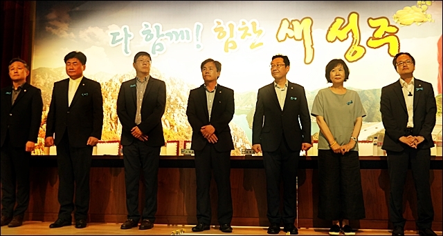 김안수 투쟁위 공동위원장은 "약자들 편에 섰기 때문에 그동안 더민주당이 있어 왔지만 내년 대권 때문에 어정쩡한 태도를 보이는 것 같아서 안타깝다"며 "군민들은 86%의 지지를 보인 새누리당을 버렸다. 성주를 적극 지지해달라"고 호소했다.
