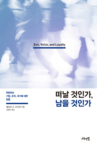 온갖 취미 동호회에서 밴드 같은 소셜 미디어로 대표되는 사이버 모임, 기타 크고 작은 조직의 구성원으로 살아갈 수밖에 없는 우리는 늘 떠날지, 남을지를 결정해야 하는 고민 속에 살아간다. 대체 동문회 밴드에는 왜 그리 귀찮게 구는 영업사원이나 시시껄렁한 음담패설, 극단적 정치 성향의 글로 도배하는 친구가 많은지? 그저 조용히 앱을 삭제하고 사라져버릴 것인가, 끝까지 맞서 싸워 조직을 '정화'할 것인가? 조직의 품질 저하(혹은 내 의도에 맞지 않게 변화하는 것이라 생각해도 좋다)에 대처하는 태도로 우리는 이탈(exit)을 택할 수 있고, 항의(voice)할 수도 있다.
