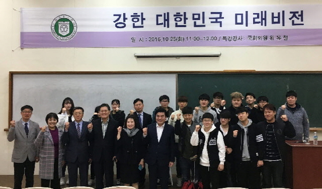 강릉영동대학교(총장직무대행 현인숙)는 25일 교내 학생회관 세미나실에서 원유철 의원(새누리·경기 평택 갑)을 초청해 ‘강한 대한민국 미래비전’이라는 주제로 특강을 진행했다 .