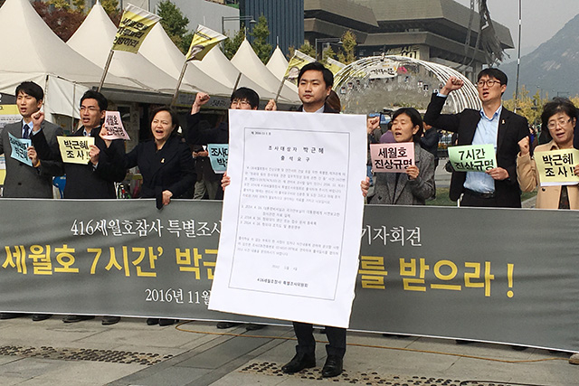 최순실 씨의 국정 개입 사실이 밝혀지면서, 세월호 참사 당시 사라진 '대통령의 7시간' 또한 최 씨와 관련 있는 게 아니냐는 의혹이 퍼지고 있다. 이에 4.16 세월호참사 특별조사위원회 조사관들이 나서서 "박근혜 대통령이 직접 7시간 행적을 밝혀야 한다"고 했다.