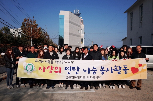 강릉영동대 교직원과 학생 60여 명은 17일 강릉시 노암동 부기촌 일대에서 어려운 이웃을 찾아 사랑의 연탄 나눔 봉사활동을 펼쳤다.