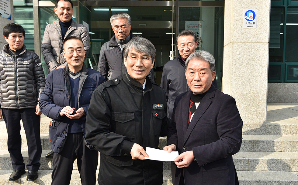 ▲강원 정선군 강원남부주민주민(주) 김기수 대표는 9일 상동읍사무소를 찾아 폐광지역 소외계층에 전해달라며 장학금을 전달하고 있다. 강원남부주민(주)는 폐광지역 4개 시군을 대상으로 사랑의 연탄과 장학금기탁, 취약계층 봉사 등 다양한 사회활동을 해오고 있다. ⓒ영월군