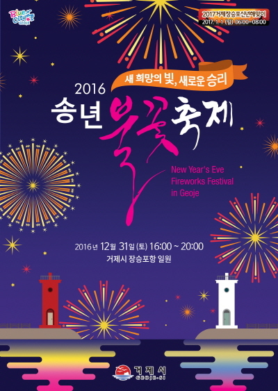 거제시가 조선경기의 불황을 극복하고 찬란했던 거제의 영광을 되살리기 위해 '새 희망의 빛, 새로운 승리'라는 슬로건 아래 '2016년 송년 불꽃축제'를 개최한다.