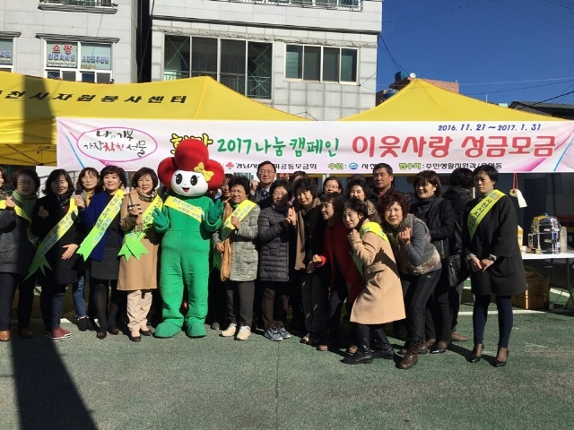 특히 시는 지난해 11월 29일 동서금동주민센터와 사천읍시장, 삼천포 용궁수산시장 등 3개소에서 ‘희망나눔 가두 캠페인’을 가졌으며, 각 읍면동에서도 희망나눔회 주관으로 가두캠페인을 실시함으로써 나눔과 배려에 대한 인식 확산으로 많은 시민의 자발적인 참여 분위기를 조성했다.