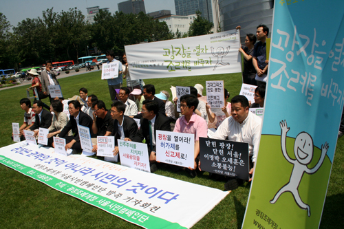 | ▲ 서울광장 조례를 바꾸자는 시민단체 활동가들 ⓒ프레시안 |