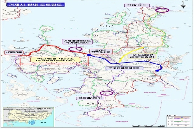 경남 거제시는 사등면 신거제대교에서 장평동을 잇는 국도14호선 도로가 4차선에서 6차선으로 확장된다고 28일 밝혔다.