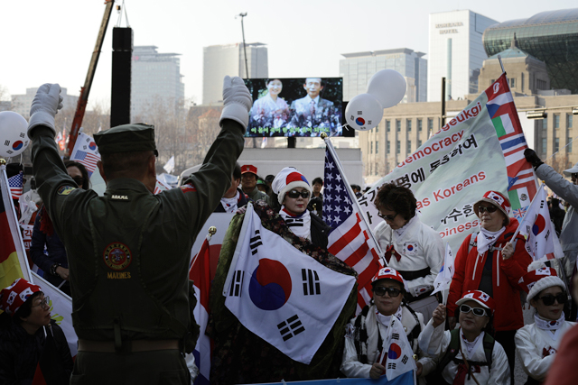 촛불 집회가 승리를 예감하는 분위기 속에 비교적 차분하게 열렸던 것과는 달리, '친박 단체'들이 연 탄핵 반대 집회는 다소 격앙된 분위기였다. 헌법재판소가 오는 10일에서 13일 사이에 탄핵 심판을 내릴 것으로 보이는 가운데, 친박 단체들은 탄핵이 인용되면 불복할 뜻까지 밝히고 나섰다.