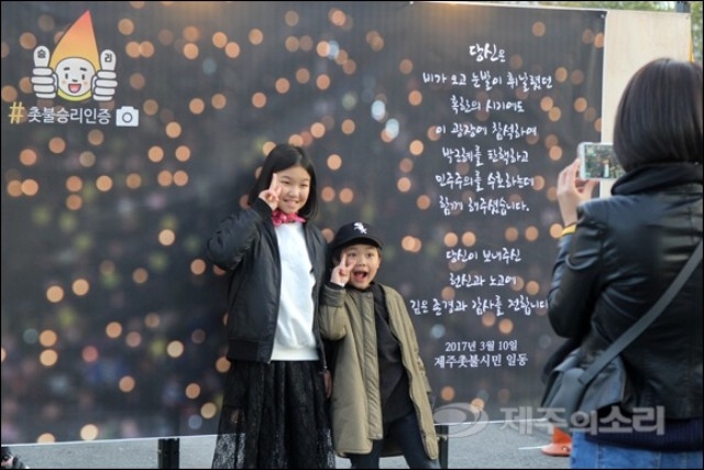 박근혜정권퇴진 제주행동 관계자는 "총 19차례의 촛불이 범죄자 박근혜를 심판했다. 이번 박근혜 파면 결정은 불의가 결코 정의를 이길 수 없다는 진리를 다시 한 번 확인시켜준 역사적 판단이었다"며 "이번 집회는 촛불승리를 자축하고 끝까지 촛불을 내려놓지 않은 도민들에 대한 존경과 고마움을 담은 것"이라고 의미를 설명했다.