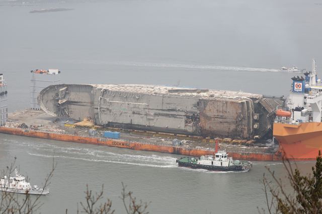 세월호가 마지막 항해를 마치고 31일 오후 1시 목포신항에 도착했다. 이후 30분까지 접안 작업을 완료했다. 이로써 1080일 만에 바다에서 뭍으로 올라온 셈이 됐다. 해수부는 반잠수식 선박 접안까지 완료함에 따라 준비작업을 거친 뒤 세월호 선체를 육상으로 옮겨놓는 작업에 본격 나설 계획이다. 오는 6일께 선체를 부두에 거치할 계획이다.
