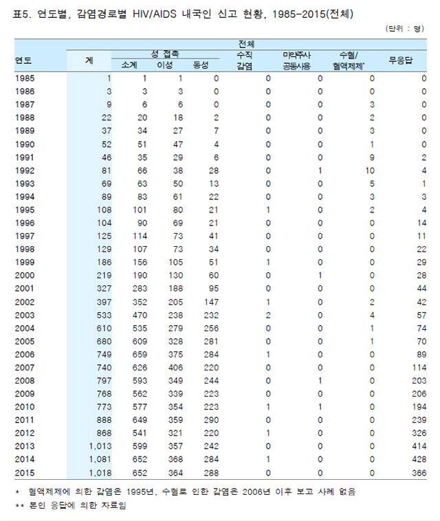 게다가 이 질병관리본부 통계는 에이즈와 HIV 환자 수가 혼재된 수치다. 에이즈와 HIV는 다르다. HIV는 에이즈를 일으키는 원인 바이러스로, HIV 감염인은 HIV가 몸 안에 들어와 있지만 일정한 면역 수치를 유지하면서 몸에 뚜렷한 증상이 없는 사람을 말한다.