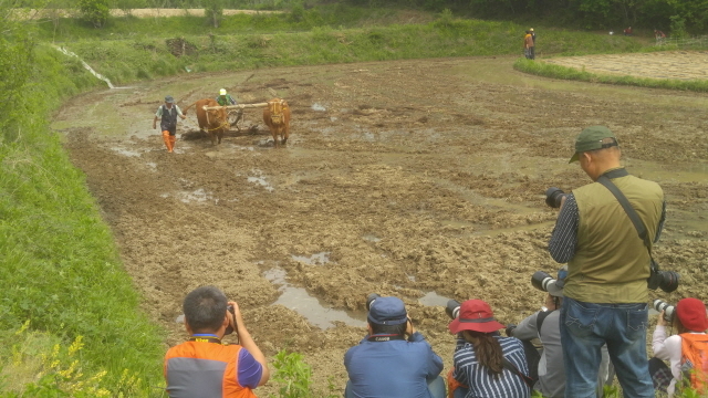 부산에서 온 한 사진작가는 “호리소 써레질은 그나마 있는데 겨릿소 써레질을 촬영할 수 있는 곳이 거의 없어서 마다않고 달려왔다”고 말했다.