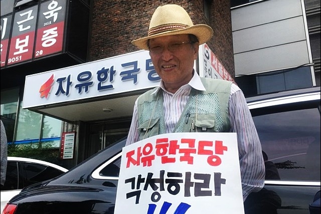 22일 오후 1시. 대구시 수성구 동대구로 자유한국당 대구시당 앞 인도에서 대구 시민 몇몇이 '자유한국당 해체'를 촉구하는 릴레이 피켓 시위를 벌였다. 왕성랑 할아버지는 페이스북에서 이 소식을 접한 뒤 딸에게 직접 피켓을 만들어달라고 부탁해 평생 처음으로 피켓을 들고 시위에 동참했다.