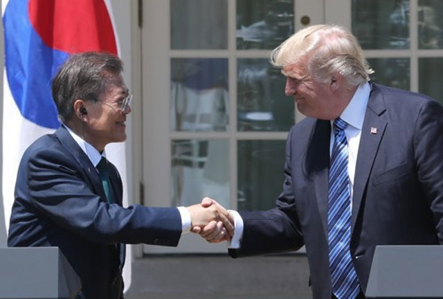 문재인 대통령과 도널드 트럼프 미국 대통령은 30일(현지시각) 백악관에서 한미 정상회담을 가진 뒤 한미 공동성명을 채택했다.