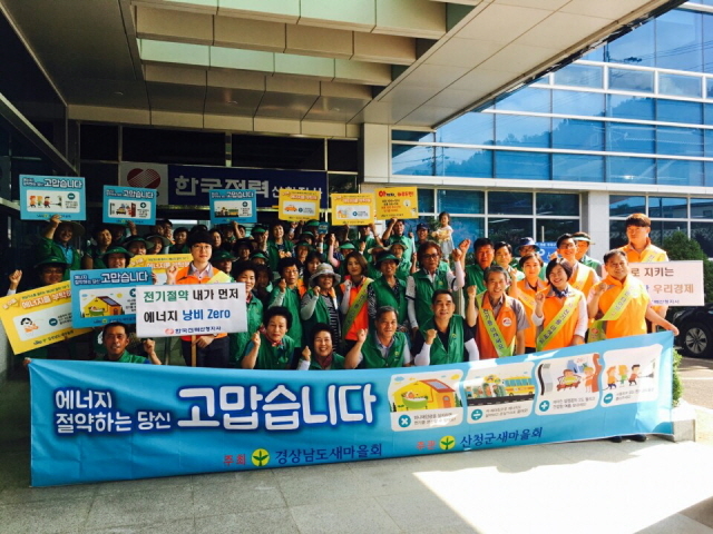 읍면새마을지도자 40여 명과 한국전력공사 산청지사 직원 10여 명이 캠페인에 참가, 에너지절약 홍보 현수막과 피켓, 홍보부채를 배부하고 절약 구호를 제창하는 등 군민 동참을 촉구했다.