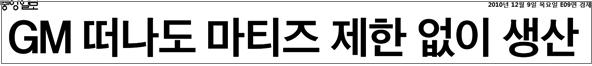 그러다 2009년 쌍용차 정리해고 사태가 벌어지고 GM의 움직임이 심상치 않게 흘러가자, 산업은행은 다시 ‘주주 간 계약서’에 입각해 글로벌 GM과 협상을 벌였고 2010년 12월에 ‘GM대우 장기발전 합의서’를 체결하게 된 것이다.