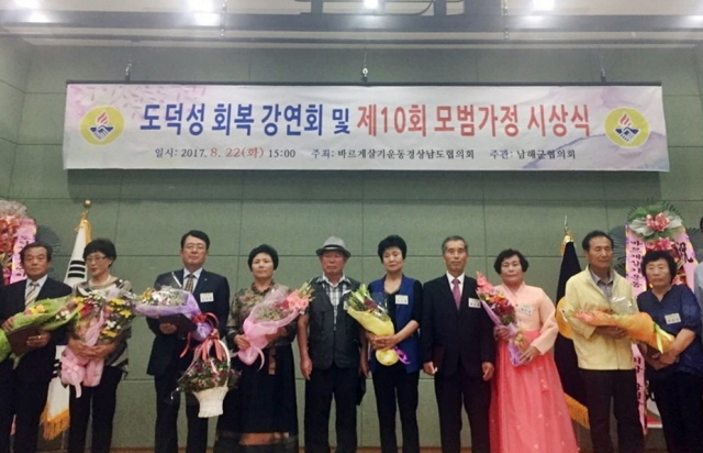 바르게살기운동남해군협의회는 남해유배문학관에서 도덕성 회복을 위한 강연회와 제10회 모범가정 시상식을 개최했다고 24일 밝혔다.
