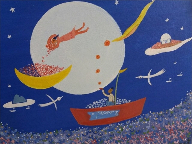 고 작가의 작품들은 엄마가 일하러 나가고 홀로 남은 아이가 남해의 파란 바다와 밤바다의 별들을 바라보며 서로가 서로를 비춰 주는 별이 되는 느낌을 표현하고 있다.