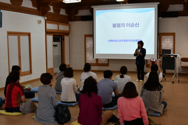 지난 6월 마늘축제 현장모임과 7월 군민과 소통하는 SNS 활용교육에 이어 이날 SNS알리미단은 역사·관광·체험의 공간으로 운영 중인 이순신순국공원을 찾아 서일순 문화관광해설사의 안내를 받으며 이순신리더십체험관과 이순신영상관 등을 답사했다.