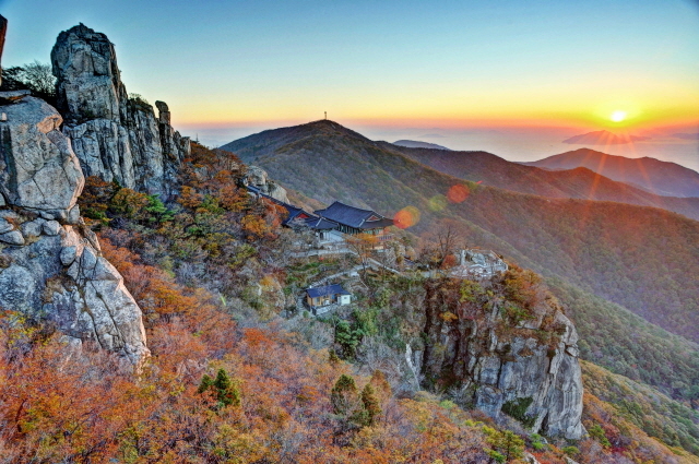남해군 하면 가장 먼저 떠오를 만큼 오랜 세월 사랑받고 있는 남해 금산 보리암의 가을은 신선이 부럽지 않을 만큼 수려한 장관을 선사한다.