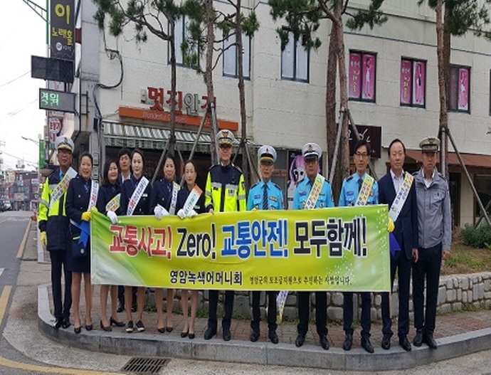 군은 지난 17일 영암경찰서, 영암교육청, 모범운전자회, 녹색어머니회 등 유관기관과 합동으로 영암군청앞, 영암터미널 앞,기찬랜드 입구 등3곳에서 운전자와 보행자에게 홍보 리플렛을 건네며 “횡단보도 정지선 및 교통신호 준수, 음주운전 근절, 안전띠 착용 등 교통질서계도 캠페인을 전개했다.