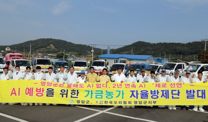 군민들로 이루어진 자율방재단은 가금 축산농가들이 자발적으로 참여해 만들어진 단체로 단원들의 자체차량에 소독장비를 설치하여 올해 10월부터 내년 5월까지 AI가 집중적으로 발생하는 시기에 영암군의 밀집사육지역, 철새도래지 및 주요 간선도로를 6구역으로 나누어 중점적으로 매일 방역·소독 활동을 실시한다고 밝혔다.