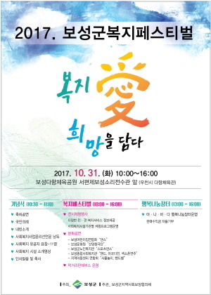 올해 처음으로 실시되는 복지페스티벌은 보성군이 주최하고 보성군지역사회보장협의체(위원장 윤동호)가 주관하며, 사회복지에 대한 군민 참여를 통해 공공·민간복지의 상호협력 체계 구축으로 복지 체감도 향상을 위해 열린다.