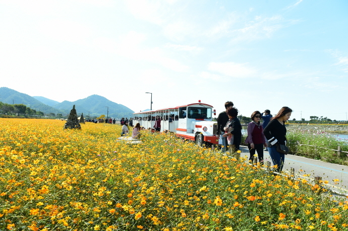 관람객들이 ‘최고’라고 입을 모으는 대표 볼거리는 10억 송이의 황하코스모스와 백일홍으로 꾸며진 꽃정원이다. 색색의 꽃들이 황룡강을 따라 3.5km 길이로 조성돼 있어‘한국에서 가장 긴 꽃강’이라는 별칭까지 얻었다.