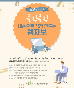 수강 희망자는 오는 16일까지 나주시청 홈페이지에 게시된 신청서를 다운·작성 후, 이메일 또는 센터 사무실(나주시 배멧3길 19-3, 엠제이빌딩 4층)로 직접 방문·제출하면 된다.