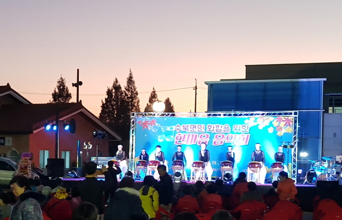 올해로 2회째를 맞는 이번 음악회에서는 김세레나 가수, 난타 공연, CNS윈드오케스트라 연주, 수북출신 가수들이 출연해 늦가을 정취를 흠뻑 자아내며, 원주민과 정착주민이 하나 되는 공감의 장으로 꾸며졌다.