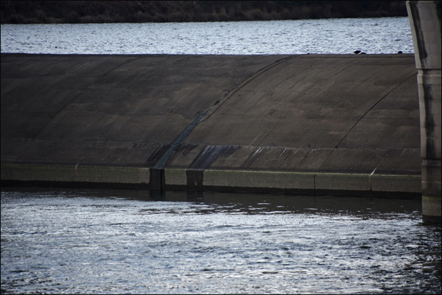 총 세 개의 수문 중에서 가운데 하나의 수문만이 약간 열려 그 수문 사이로만 강물이 흐를 뿐으로, 좁은 물길 사이로 빠져나온 강물은 그렇게 수문이 있는 그곳에서만 물길을 만들 뿐이었다. 그런데 그것도 잠시 수문은 이내 다시 닫혔다. 수문 개방에 따른 생태환경의 변화를 고려하여 서서히 열겠다는 정부의 의도라 읽혀진다. 하지만 너무 속도가 느리다. 조금만 하류로 내려가면 이내 흐름이 없는 잔잔한 호수의 모습 그대로일 뿐인 것이다.
