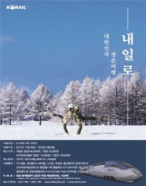 최근 몇 년간 내일로 성지로 불리며 내일로 판매 1위를 기록해온 코레일 전남본부에서는 동계기간 내일로 페스티벌, 내일로 홍보단 운영, 숙박 지원혜택을 1박에서 2박(일부지역한)으로 늘리는 등 기존의 혜택과 이벤트를 더 강화하여 내일로 고객을 맞이할 계획이다.