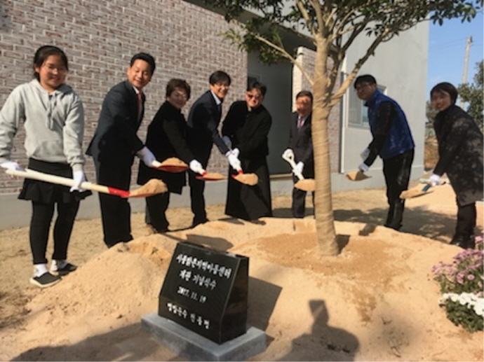 이날 100일잔치 행사는 기념식수를 비롯한 삼성전자에서 체험활동 프로그램과 실내벽화 그리기 등 다채로운 행사로 이뤄졌다.