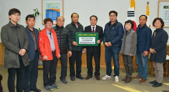 담양읍교회는 관내 저소득층 희귀난치성질환자 및 암환자의 지원을 위해 사용해달라고 성금을 기탁했다. 한돈협회담양군지부는 매년 아동시설 및 저소득층 지원을 위해 ‘한돈’을 꾸준히 기탁해오고 있다.