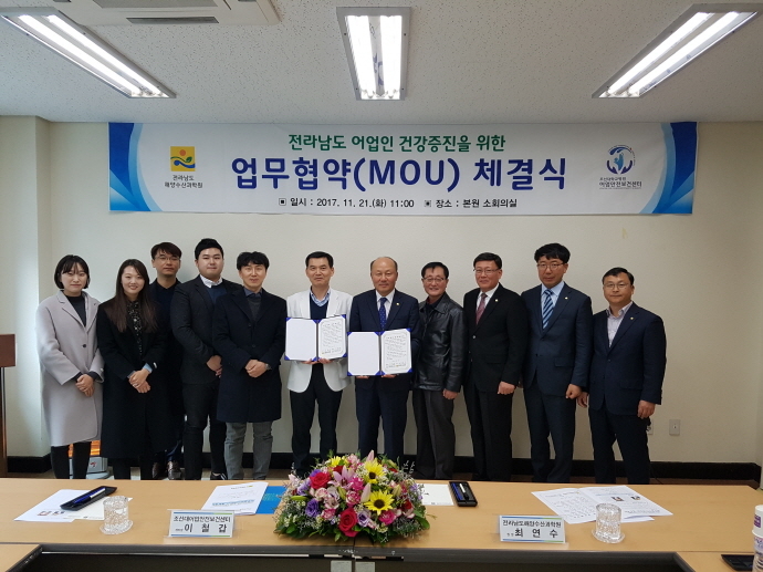 전라남도해양수산과학원은(원장 최연수)은 조선대학교병원 어업안전보건센터와(센터장 이철갑) 어업인 건강 증진을 위한 전국 첫 교육 프로그램 운영 업무협약을 체결했다고 22일 밝혔다.