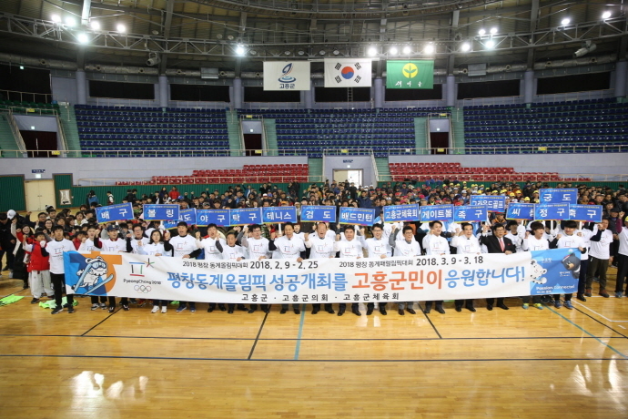 고흥군(군수 박병종)은 지난 11월 25일 고흥팔영체육관에서 고흥군 체육인 및 가족 등 2,000여 명이 참석한 가운데 '2018 평창동계올림픽 및 패럴림픽대회 성공기원' 홍보행사를 개최했다고 밝혔다.