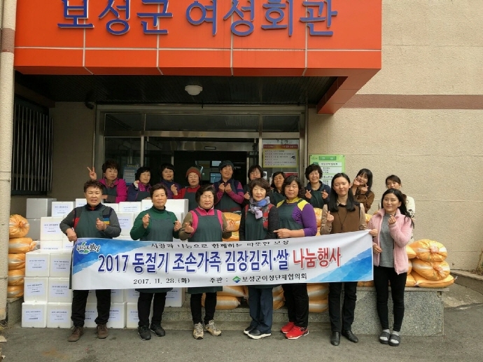 보성군여성단체협의회(회장 고재순)는 28일 여성회관에서 김장하기 어려운 조손가족을 위해‘2017년 조손가족 김장김치와 쌀나눔 행사’를 실시했다.