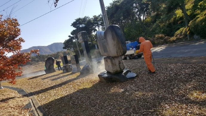 나주시 봉황면 만봉2구 마을 김용화 이장은 지난 25일부터 26일까지 이틀간에 걸쳐 봉황면 관내 면사무소, 농협, 복지회관, 향우정 등에 설치된 30여개의 표지석을 직접 살수차를 동원해 깨끗이 청소했다.