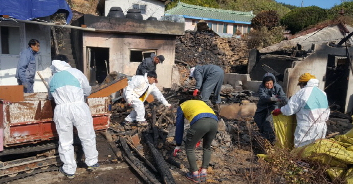 이날 봉사활동 참여자들은 화재 잔해물 철거부터 시작해 도배, 장판 교체, 싱크대 설치 등을 하며 구슬땀을 흘렸다.