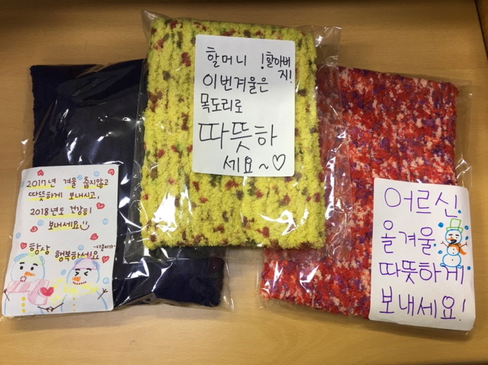 한영수 지도 교사는 “목도리에 담긴 학생들의 아름답고 따스한 마음이 올 겨울 외롭게 홀로 지내시는 어르신들의 마음까지 따듯하게 만들 것”이라고 말했다.