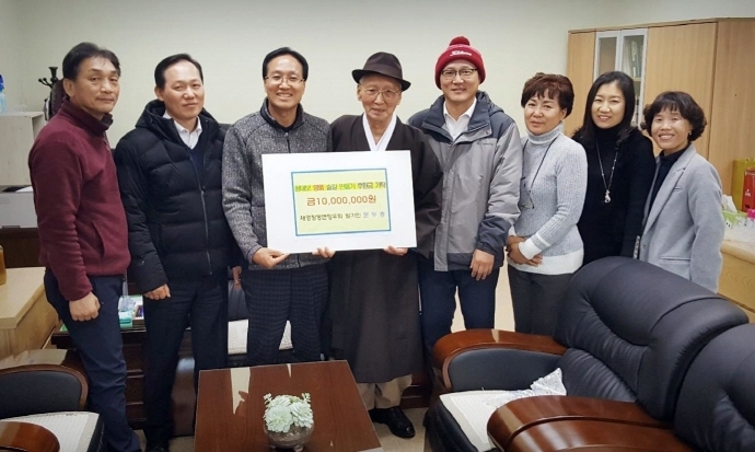 장흥군 재경장평면향우회 문두종(남, 89세) 씨가 지난 5일 광대보 명품 숲길 조성을 위해 써달라고 1천만원을 기탁했다.