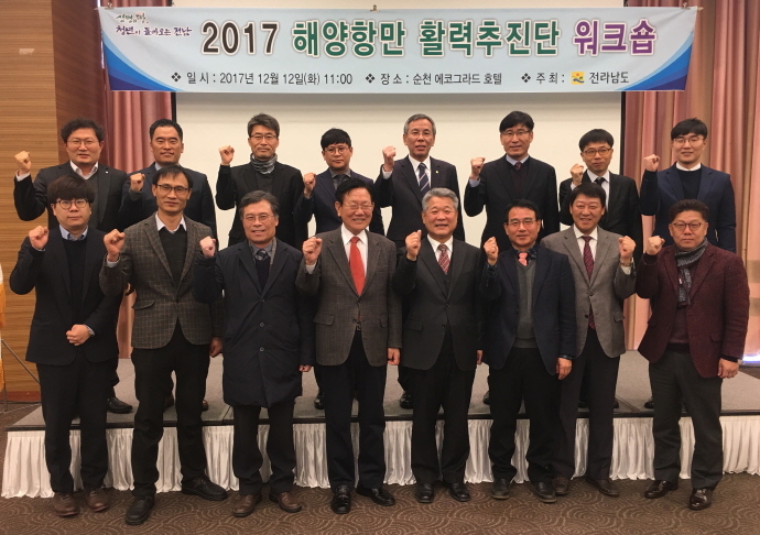전라남도는 12일 순천 에코그라드호텔에서 해운물류의 난제 극복과 항만물류시장 변화 등에 대응하기 위한 전라남도해양항만활력추진단(단장 이은) 워크숍을 개최했습니다.
