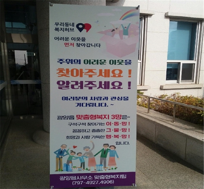 한편, 광양읍사무소는 지난 11월 28일 광양경찰서 읍내지구대, 광양읍 지역사회보장협의체, 읍내 자율방범대, 서부 자율방범대와 함께 복지사각지대 발굴과 지원을 위한 업무 협약(MOU)를 체결했다.