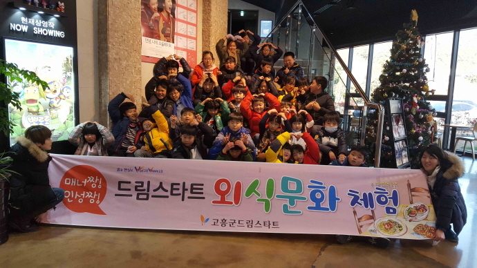 고흥군(군수 박병종)드림스타트는 평소 외식문화를 쉽게 접하기 어려운 드림스타트 아동 60명을 대상으로 지난 13일과 19일 양일간 고흥작은영화관에서 영화 관람 후 지역에 새로 마련된 레스토랑에서 외식문화를 체험하는 프로그램을 진행했다.