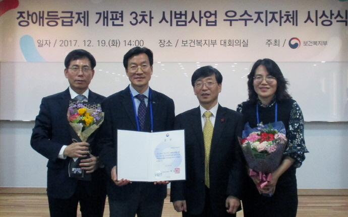 시는 지난 19일 세종시 보건복지부 청사에서 열린 ‘장애등급제 개편 시범사업 수행 우수기관 시상식’에서 보건복지부장관상과 포상금 2000만 원을 받았다고 20일 밝혔다.