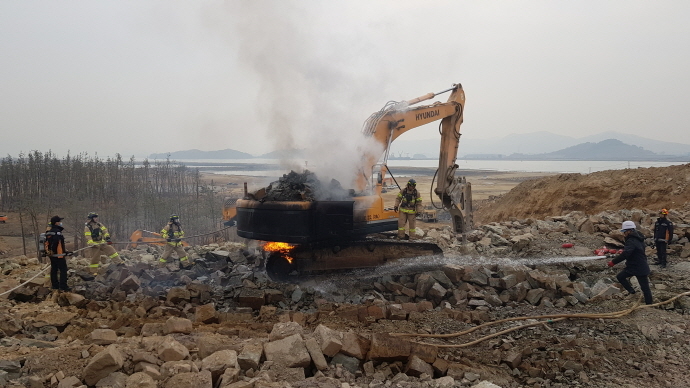 전라남도 광양시 황금산단 공사장에서 28일 오후 13시 39분경 작업중이던 포크레인에서 불이났다, 불은 출동한 소방관에 의해 14시 30분경 진화됐다.